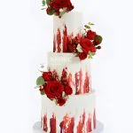 Красный торт с белыми подтеками и розами