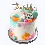 Акварельный торт девочке на 11 лет с макарунс