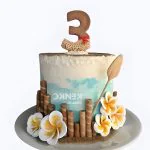 Акварельный торт девочке на 3 года с цветами и вафельными трубочками