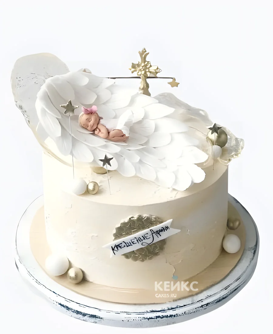 Торт на крещение девочки с ангелочком