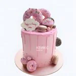 Аппетитный торт девушке на 20 лет с пончиками и макарунс