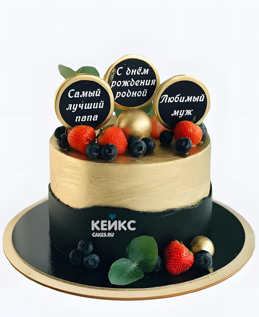 Аппетитный торт мужчине на 70 лет с ягодами и надписями