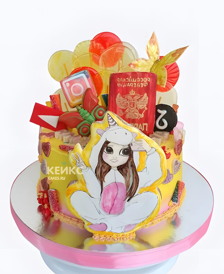 Аппетитный торт на 14 лет с паспортом и лайками