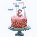Яркий и праздничный торт в нежных розовых и золотистых тонах создан специально для маленькой принцессы. Верх украшен воздушными мастичными розами, бантиками и цифрой «3» с золотым напылением. По бокам — изящные волны из мастики, напоминающие пышное платье. Легкие жемчужные бусины и золотые блестки добавляют торту нарядности и волшебства. Каждая деталь продумана до мелочей, создавая атмосферу сказки и детского праздника.