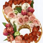 Аппетитный торт на 8 марта с клубникой и живыми цветами