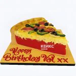 Этот торт — настоящая иллюзия! Выполненный в виде сочного кусочка пиццы, он выглядит настолько реалистично, что хочется сразу откусить. Тонкая корочка с золотистыми поджаристыми краями, аппетитные «кусочки колбасы» и расплавленный «сыр» — все детали проработаны до мелочей. Яркие цвета и объемная форма создают эффект настоящего итальянского блюда. Такой торт станет неожиданным и запоминающимся украшением любого праздника, особенно для любителей необычных десертов.