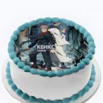 Этот торт словно сошел с экрана аниме — яркая фотопечать с героями «Магической битвы» сразу притягивает взгляд. Голубые и белые оттенки создают ощущение легкости и волшебства, будто перед тобой портал в другой мир. Круглая форма и гладкое кремовое покрытие делают его похожим на магический артефакт, который хочется рассмотреть со всех сторон. Кажется, что сейчас персонажи оживут и начнется настоящее приключение.