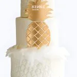 Бело-золотой торт с ананасом — это элегантное трехъярусное кондитерское произведение, где белоснежная мастика гармонично сочетается с золотыми акцентами. Фотопечать добавляет современный штрих, делая торт не просто десертом, а настоящим арт-объектом. Чистые линии и лаконичный дизайн создают ощущение праздничной роскоши, а золотые элементы придают торту торжественный блеск. Такой торт станет эффектным центром любого мероприятия, притягивая взгляды своей изысканной простотой.