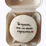 Белый бенто-торт на годовщину с надписью и сердечком