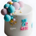 Белый гендер-торт с цветными шарами