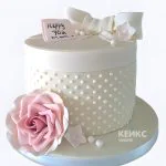 Белый минималистичный тортик в виде коробки с бантиком и розой