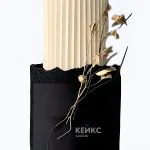 Белый свадебный торт двухъярусный с черным ярусом и золотой веточкой