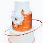 Белый свадебный торт Оранжевый обруч с белым цветком