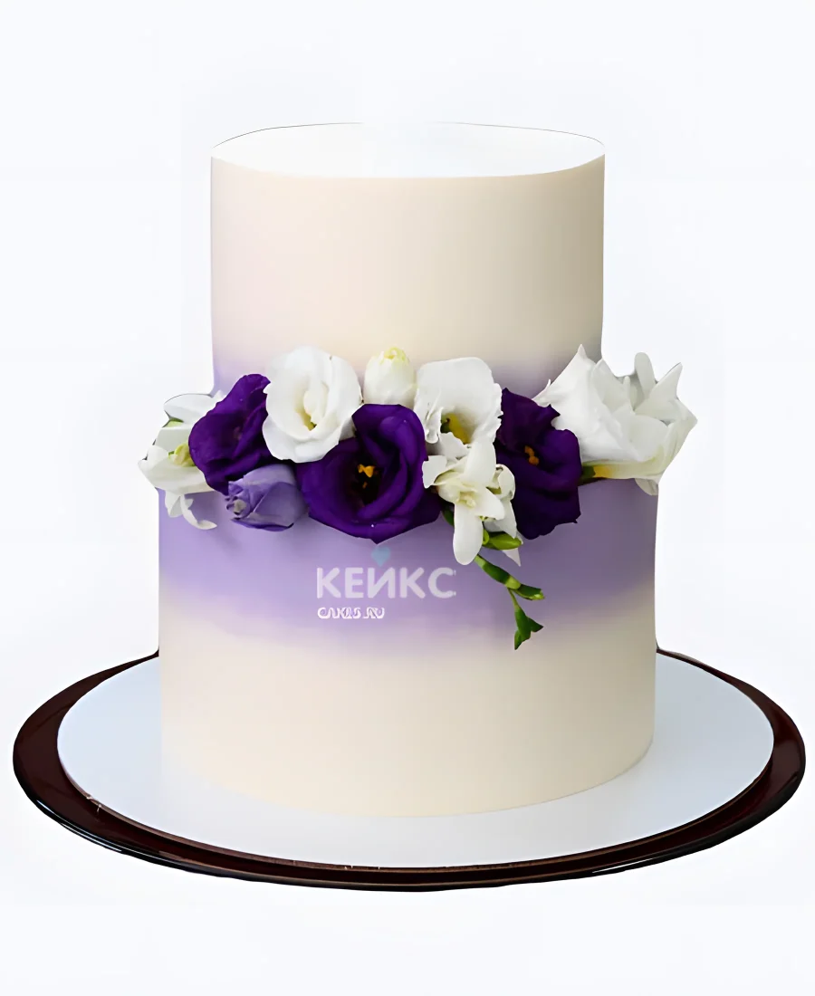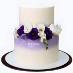 Белый свадебный торт с фиолетовыми цветами