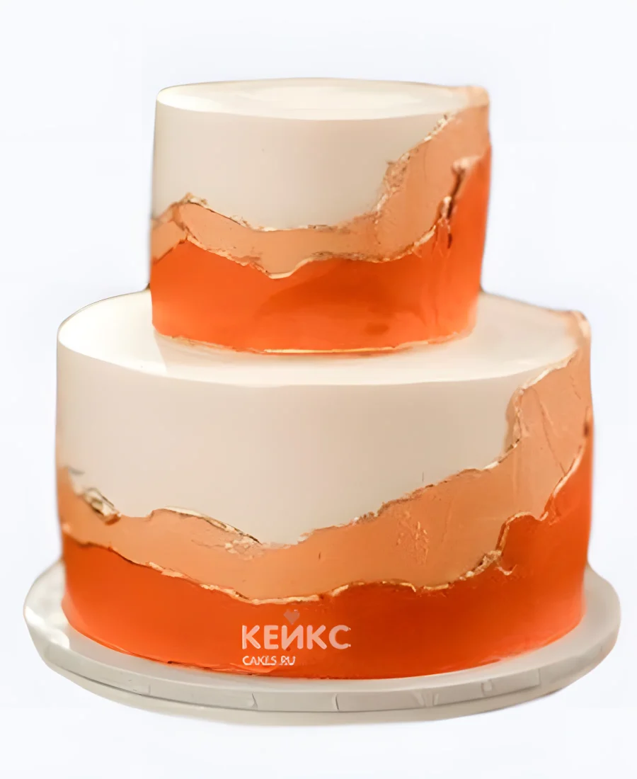 Белый свадебный торт с оранжевым обрамлением