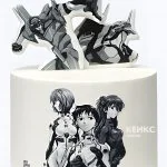 Белый торт на день рождения аниме Евангелион
