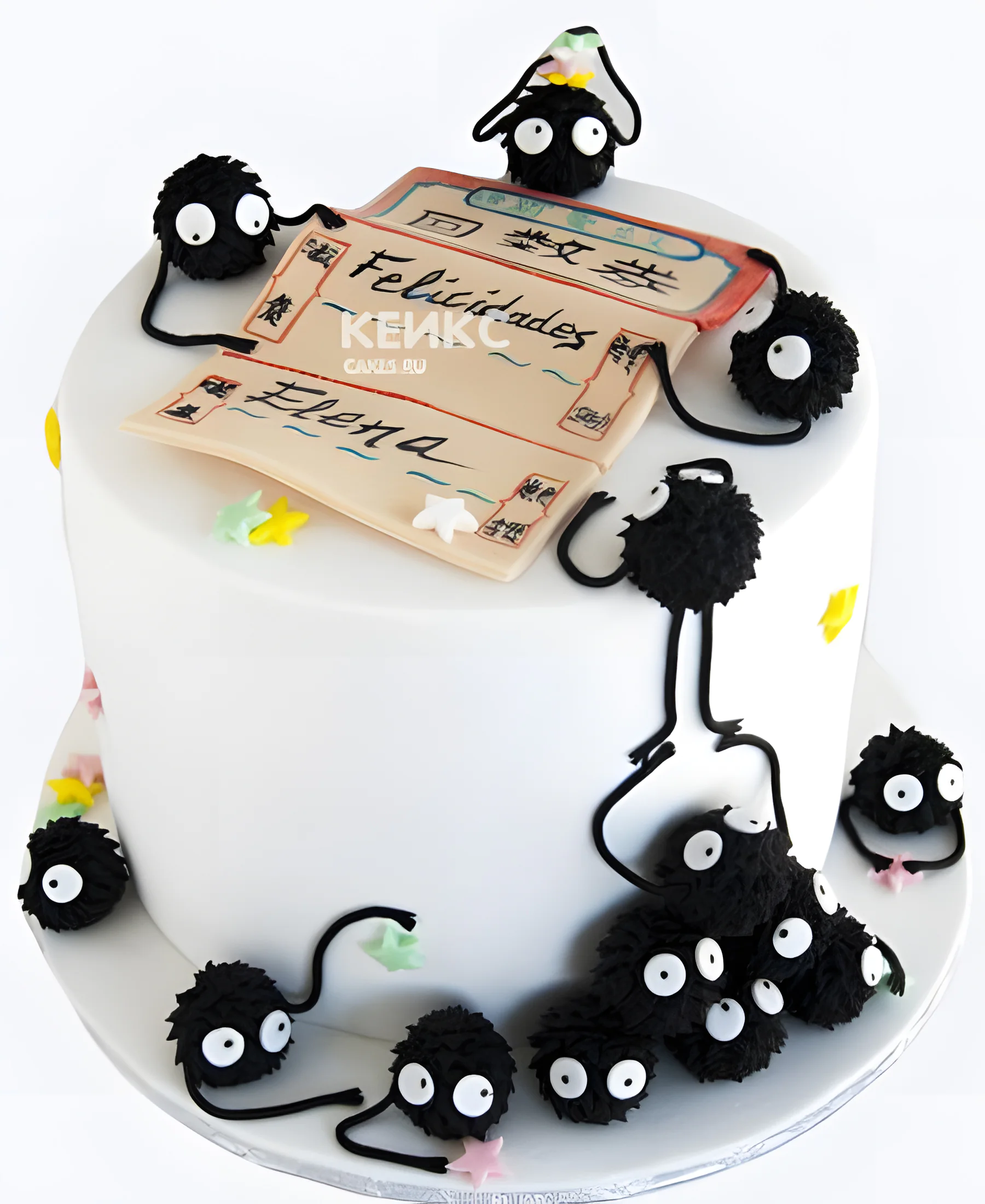 Белый торт на день рождения с билетом аниме Унесенные призраками