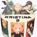 Белый торт на день рождения с фотопечатью аниме Семейка шпионов