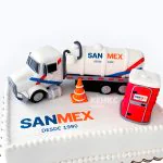 Белый торт с 3д фигуркой грузовика сверху
