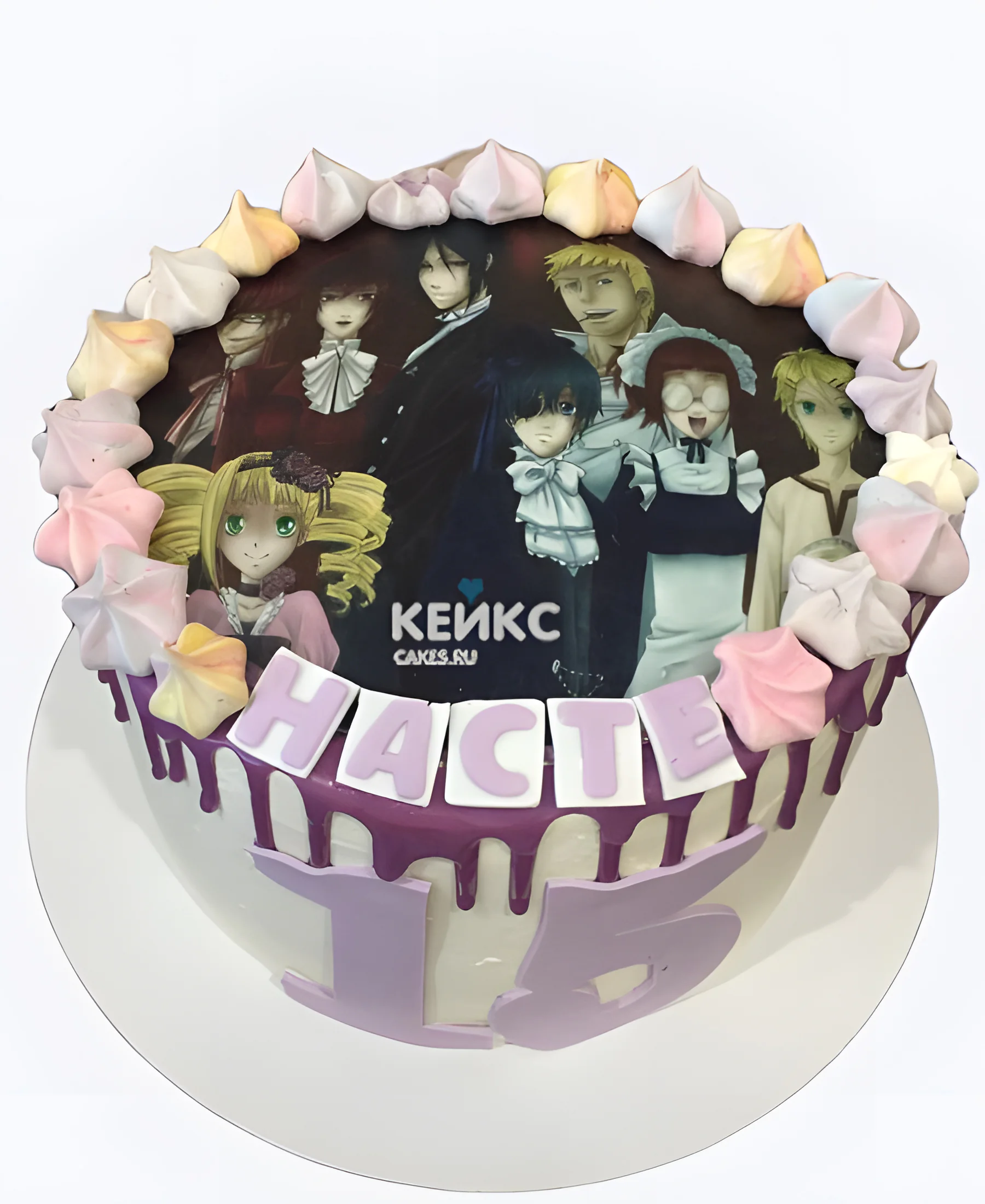 Белый торт с безе на день рождения аниме Темный дворецкий