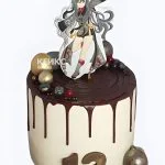 Белый торт с шоколадной глазурью на день рождения Геншин