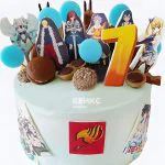 Белый торт с сладостями на день рождения аниме Хвост Феи