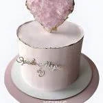 Нежный розовый торт с воздушными кремовыми рюшами по краям создает ощущение праздника. В центре — объемное сердце из крема, украшенное блестками и жемчужными бусинами. По бокам рассыпаны конфетти и миниатюрные золотые звезды. Светло-розовые и персиковые оттенки сочетаются с золотыми акцентами, придавая торту трогательную и одновременно нарядную атмосферу. Этот торт словно сошел со страниц сказочной истории.