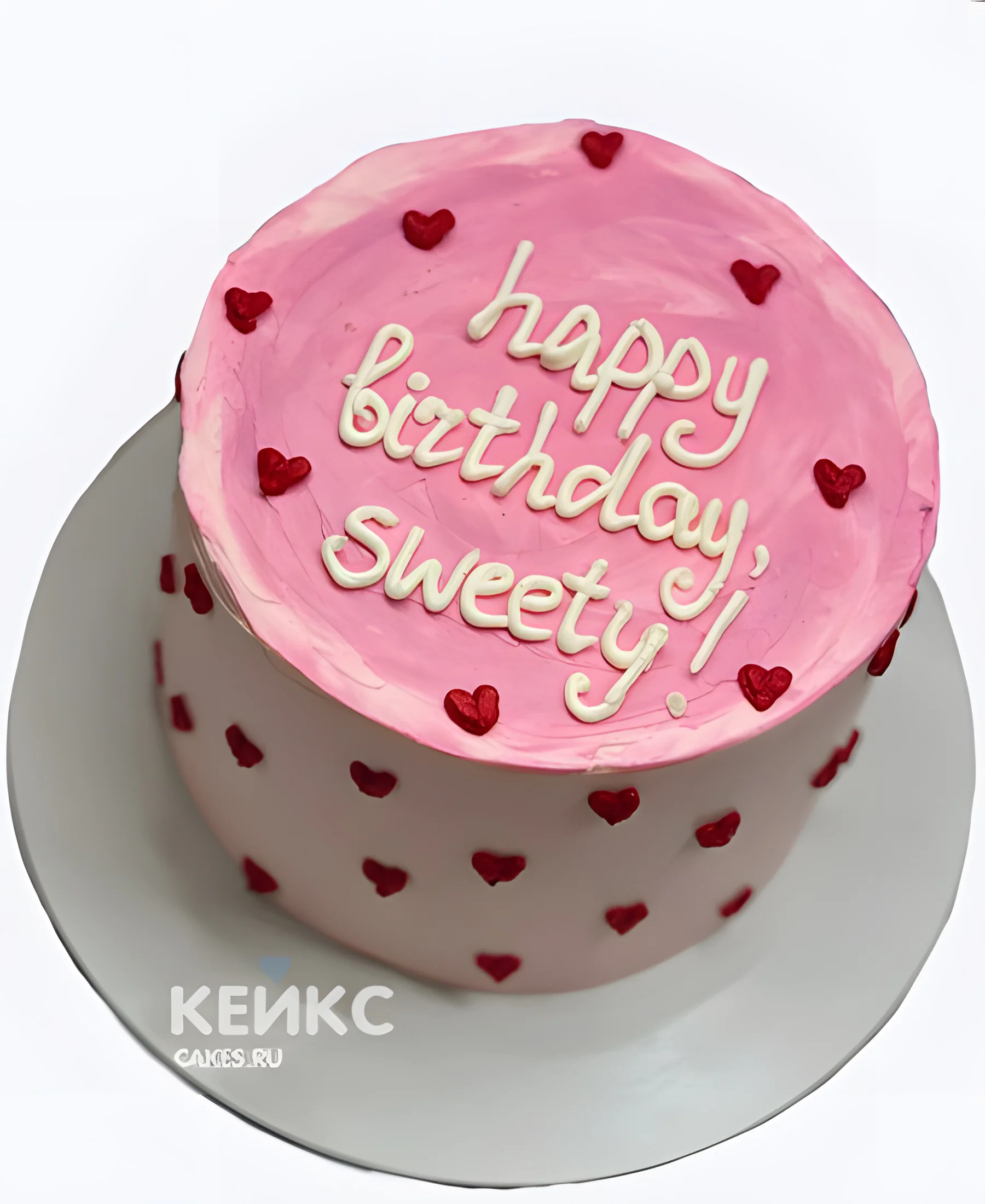 Бенто торт девочке на 9 лет с надписью и сердечками