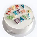 Бенто-торт для девочки белый с цветной надписью и смайликом