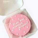 Розовый бенто-торт на 8 марта с прикольной надписью