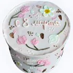 Этот круглый бенто-торт создан для празднования 8 Марта. Нежные кремовые цветы в пастельных оттенках украшают его поверхность, напоминая весенний сад. Розовые, персиковые и белые тона создают воздушную композицию, а аккуратные листья из крема добавляют натуральности. Торт выглядит утончённо и романтично, передавая атмосферу первого весеннего праздника. Его компактный размер делает его милым и изящным, как букет в миниатюре.