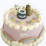 Этот очаровательный бенто-торт создан для первого дня рождения! Нежный круглый торт покрыт мягким кремом пастельных оттенков. Главное украшение — милые аппликации с улыбающимися зверушками, которые словно сошли со страниц детской книжки. Их трогательные мордашки и яркие детали сразу привлекают внимание. Светлая цветовая гамма создает ощущение легкости и праздника, а аккуратные элементы декора добавляют торту особого шарма. Такой торт станет центром внимания на любом детском празднике!