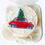 Новогодний торт с очаровательной машинкой наверху создает праздничное настроение. Фотопечать с зимним пейзажем и елочными игрушками гармонично сочетается с объемными аппликациями. Сочные красные и зеленые акценты на белоснежном фоне напоминают о приближающемся празднике. Миниатюрный автомобиль с подарками добавляет торту динамики и сказочной атмосферы.