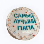 Этот стильный торт станет оригинальным подарком папе ко дню рождения! Он небольшого размера, оформлен в минималистичном стиле, украшен белым кремом и красочными рисунками.