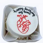 Этот бенто-торт — маленький шедевр, наполненный нежностью и вниманием к деталям. Круглая форма с гладким кремовым покрытием создаёт элегантную основу. На белоснежной поверхности — трогательная аппликация с надписью «Моя любовь», обрамлённая тонкими золотыми линиями и миниатюрными цветочками. Пастельные оттенки розового и бежевого добавляют торту теплоты и романтики, а аккуратные штрихи делают его похожим на открытку ручной работы.