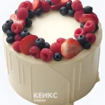 Бенто торт женщине с ягодным ассорти и подтеками