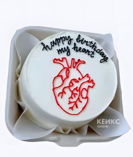Белый бенто-торт на 18 лет с надписью и сердцем Фото Заказать