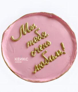 Розовый бенто-торт маме с золотой надписью Фото Заказать