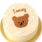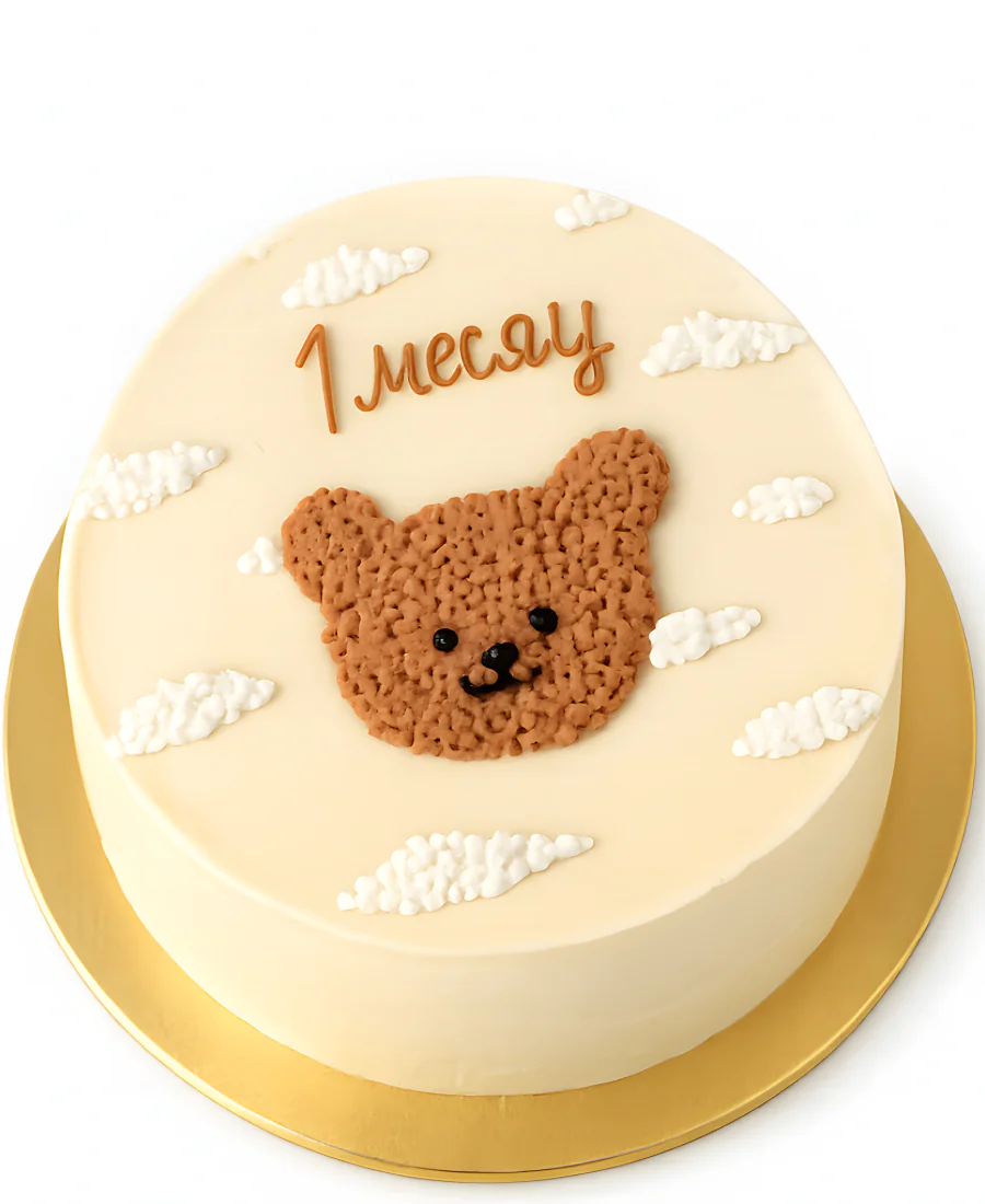 Бежевый бенто-торт с медведем и облаками
