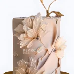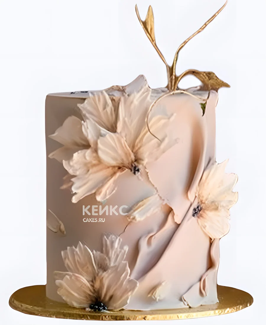 Бежевый свадебный торт Эффектные цветы
