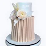 Бежевый свадебный торт с объемным геометрическим узором и цветами