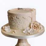 Бежевый свадебный торт с узорами цветов
