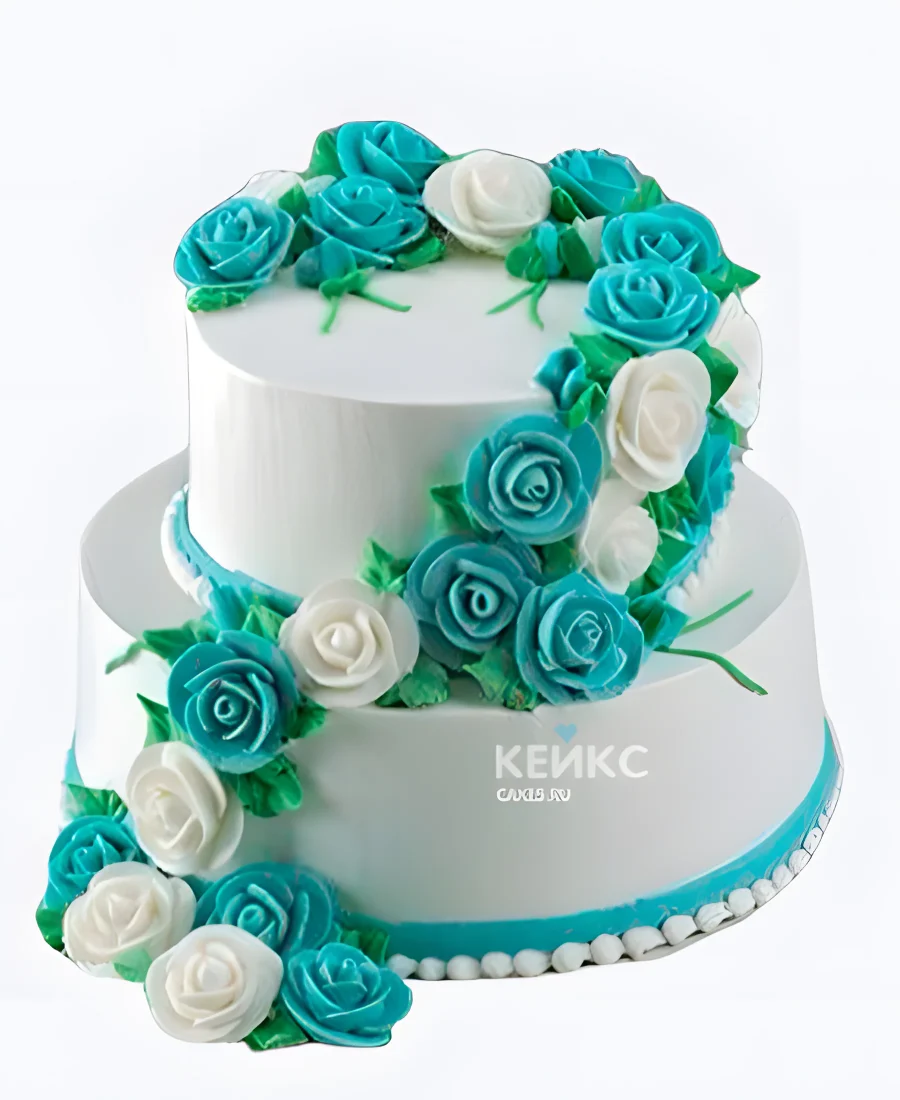 Бирюзовый свадебный торт Ручеек из роз