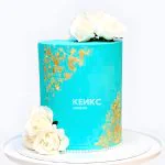 Бирюзовый свадебный торт с розами и золотом