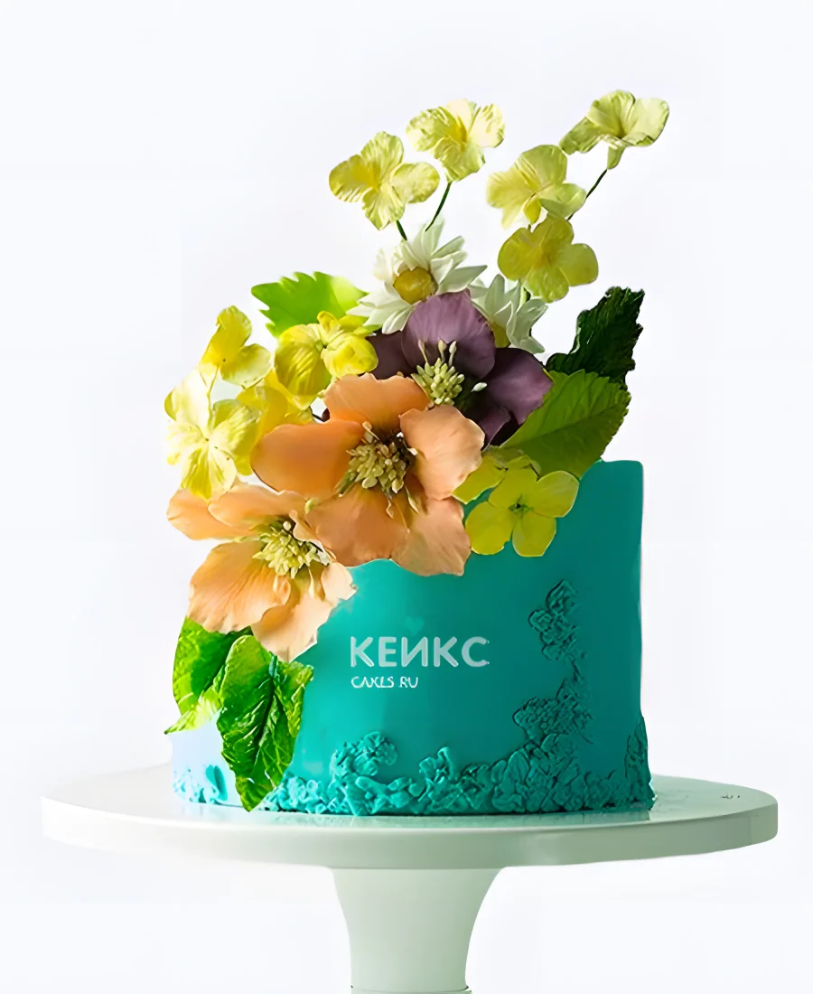 Бирюзовый свадебный торт Желтые цветы