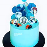 Бирюзовый торт на день рождения аниме Очень приятно Бог
