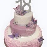 Блестящий трехъярусный торт с розами и бабочками на день рождения
