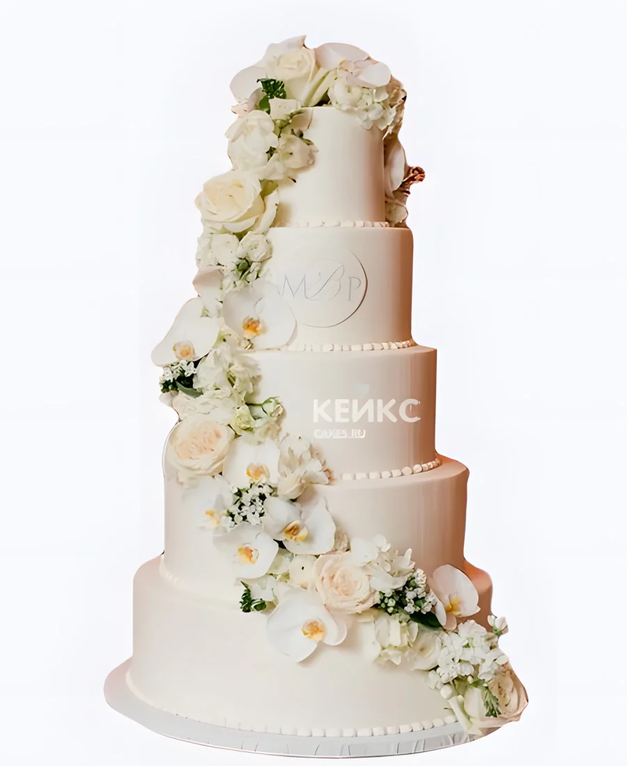 Большой свадебный торт Каскад орхидей и роз