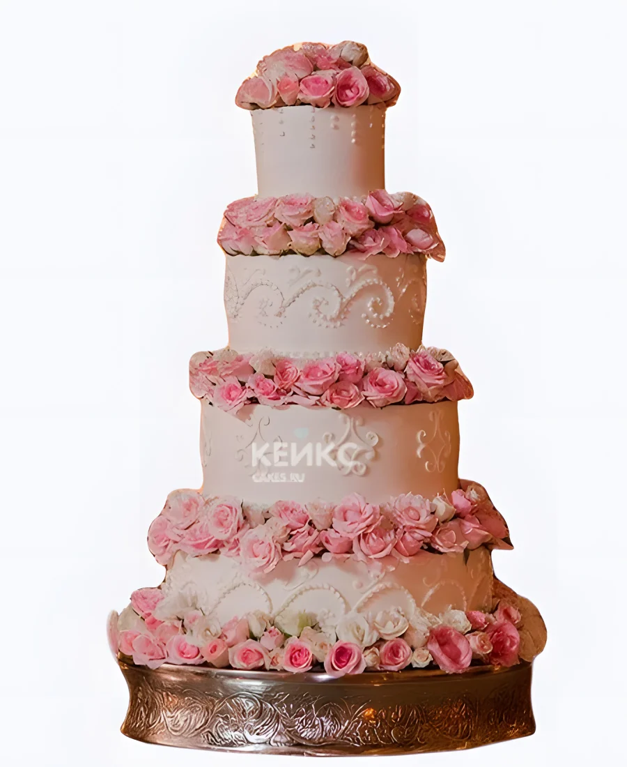 Большой свадебный торт Розовые розы с узорами