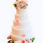 Большой свадебный торт с мазками и букетом роз